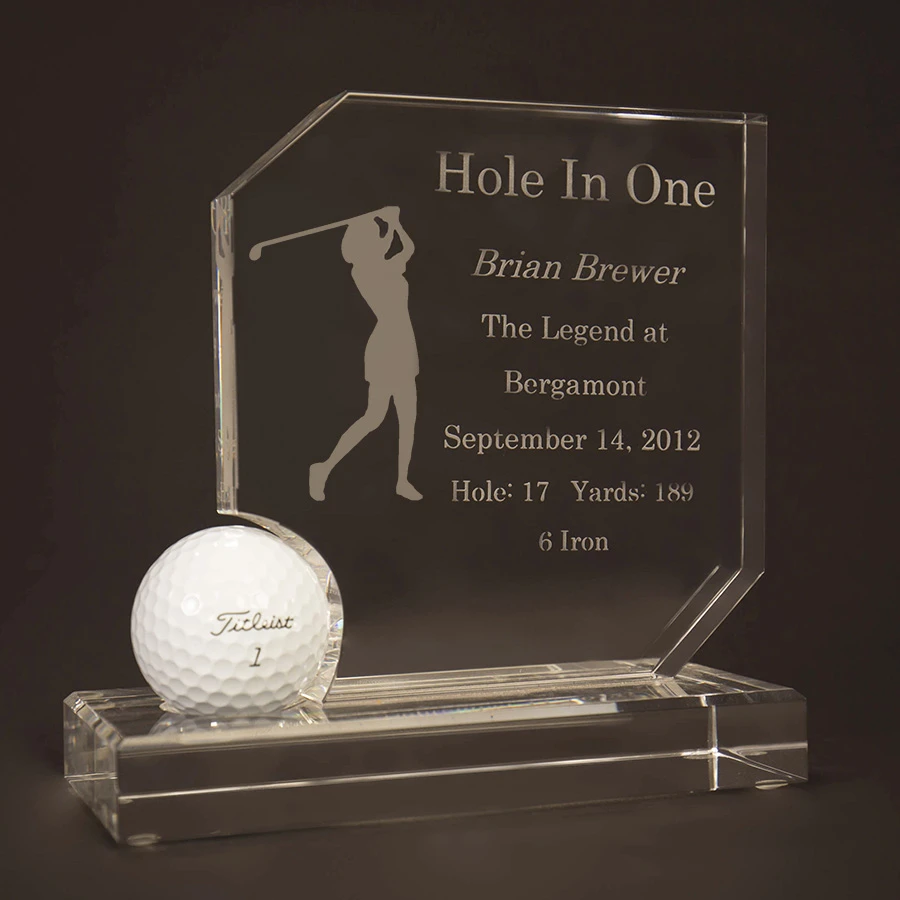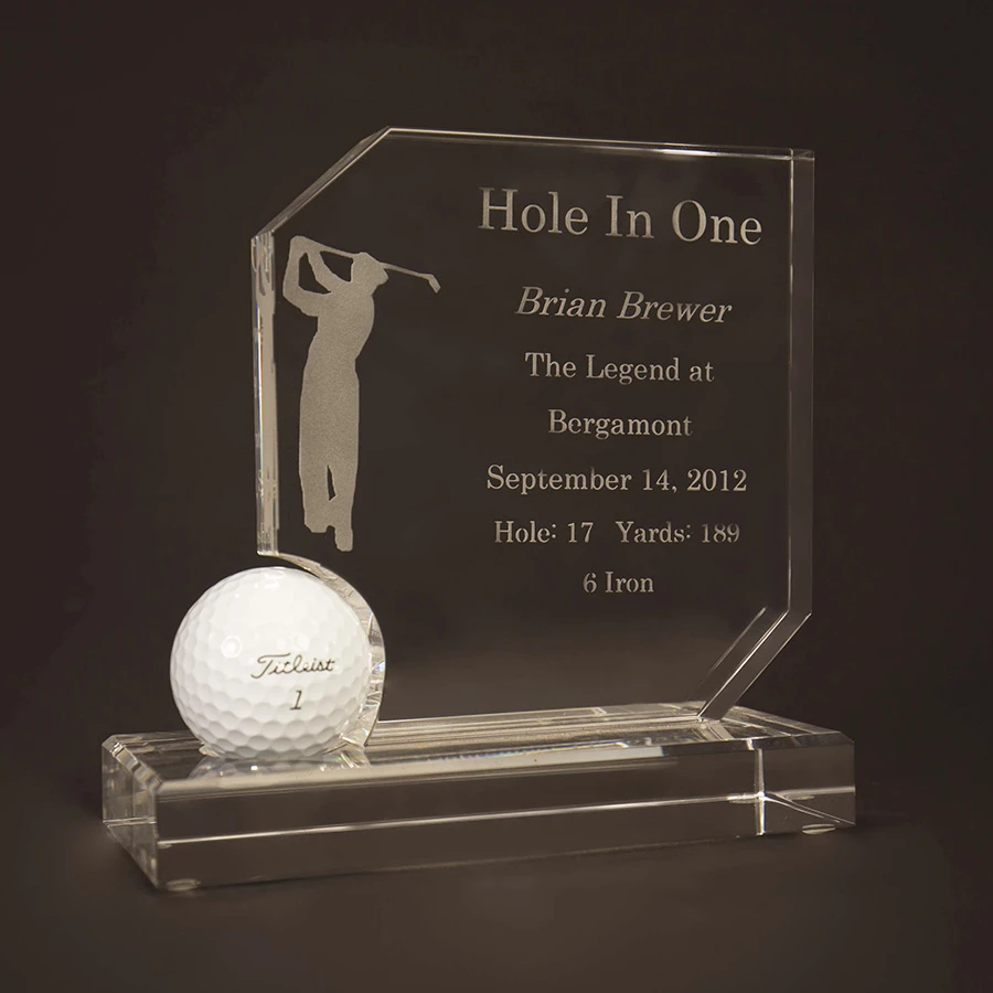 Record your special achievement with this beautiful crystal award that is beautifully etched on optic glass. Free personalization and shipping. Just place your keepsake ball as shown.