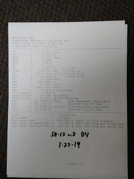 | Ported Enclosure | 1.75 cu ft |