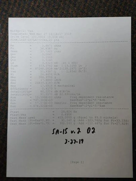 - Ported Enclosure: 3.5 ft^3 tuned to 35 Hz (F3 of ~28 Hz)