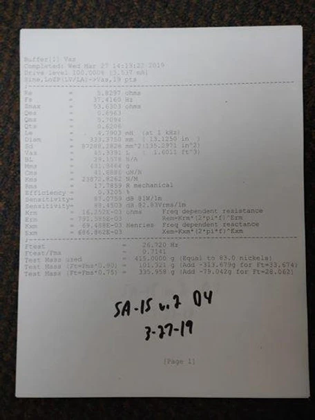 - Ported Enclosure: 3.5 ft^3 tuned to 35 Hz (F3 of ~28 Hz)