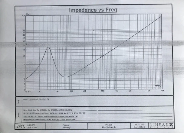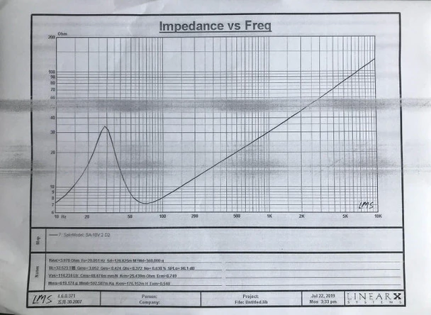 This 18-inch model features a larger motor than the SA-10/12/15 v2 at a full 205mm diameter and a 60mm magnet stack height. The top plate is also thicker in order to more effectively move the higher mass 18″ soft parts. It has a large 234mm diameter spider pack for very high mechanical stroke capacity. It utilizes the same 2.75″ coil as the other SA v.2 series for a 1000-watt RMS power rating.