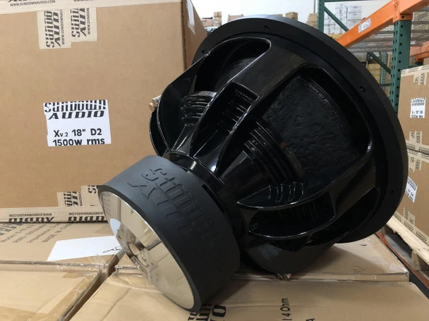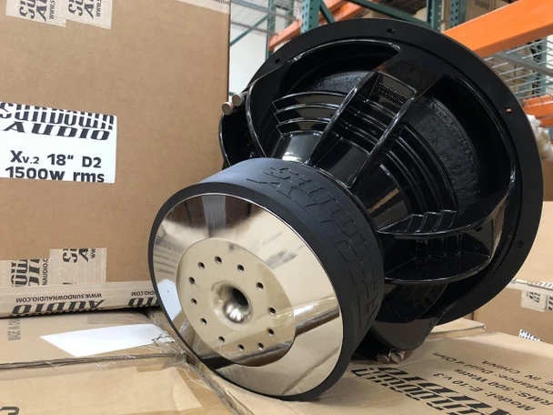 The X v.2 series is the first driver in the Sundown woofer line-up to offer our “ultra-high excursion” suspension and frame designs. The 10, 12, and 15″ models feature our custom tooled and patented frames (US Patent Numbers D691596, D691597, and D691598) and the 18″ model uses the tried and true 18″ 6-spoke with a custom tooled adapter to allow for a full 10″ diameter spider. Optionally our custom tooled 18” frame is available for an extra charge (US Patent Number D741841) – this frame utilizes an 11” spider & changes the coil configuration availability changes to D1 & D2.
